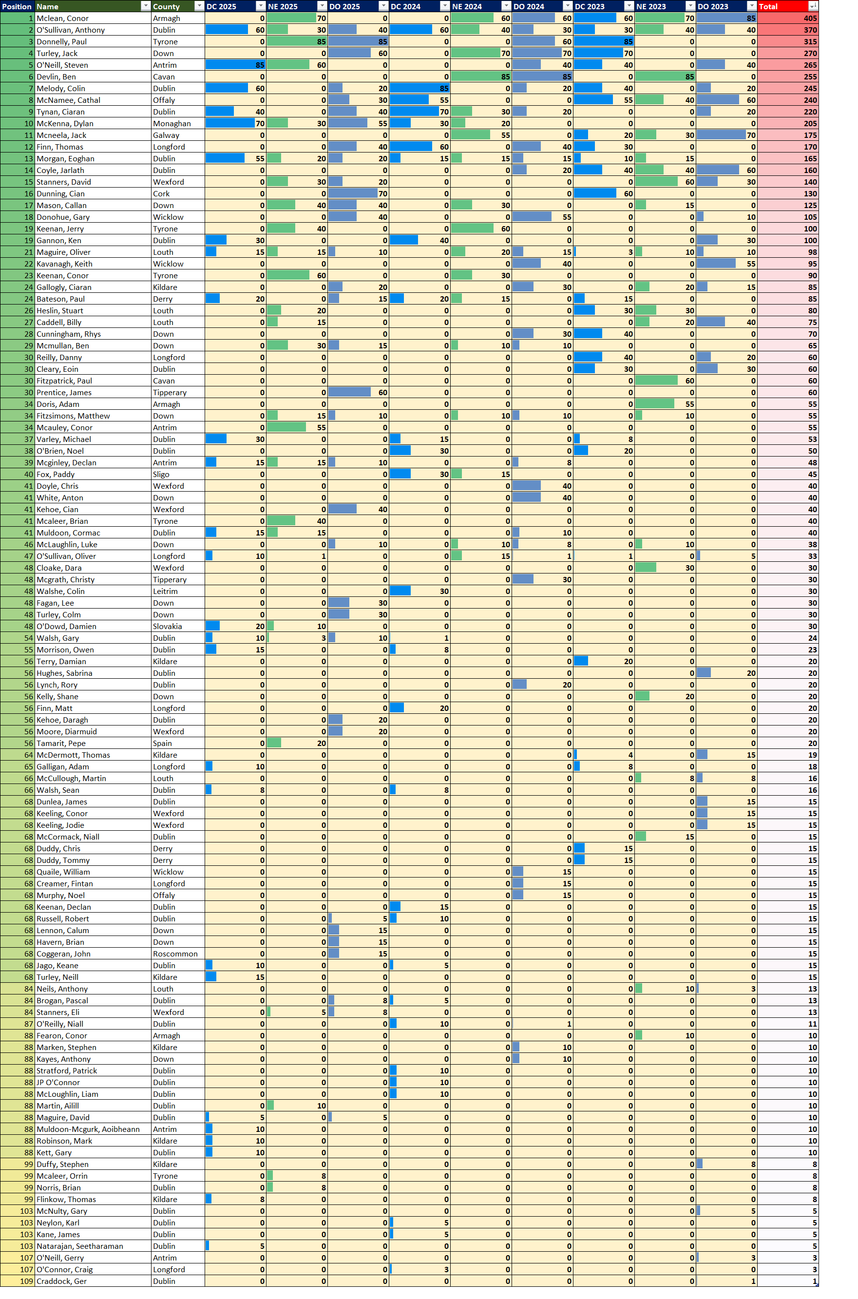 2025 Points Rankings